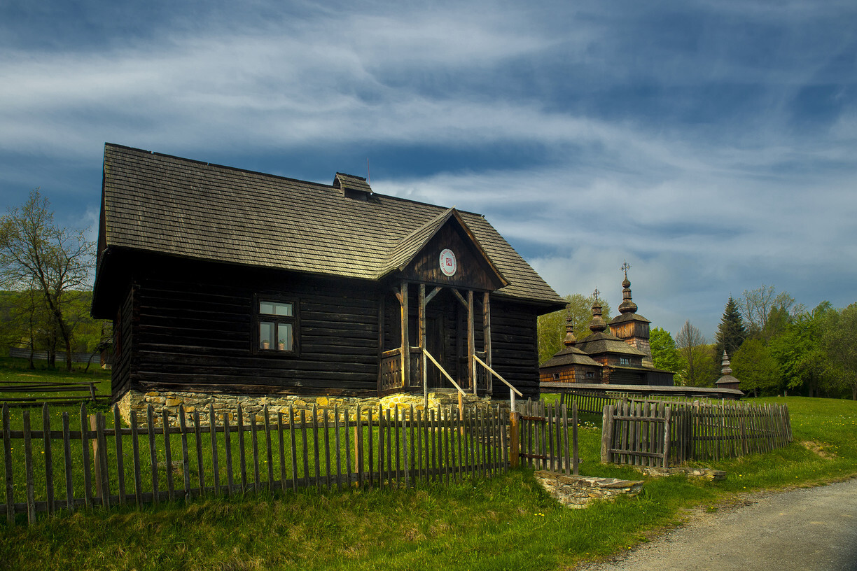 Č.2. Ilustračné foto detail Štátnej ruskej ľudovej školy zo Skanzenu SNM - Múzea ukrajinskej kultúry vo Svidníku
